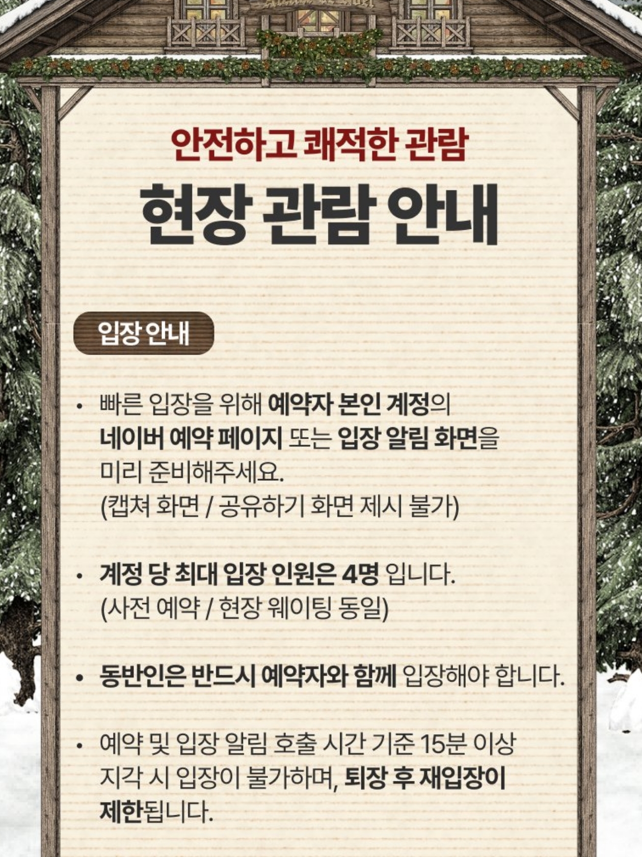 더현대 서울 크리스마스 빌리지 예약은 사전 온라인 예약제로 운영됩니다. 보통 네이버 예약 또는 더현대 공식 채널을 통해 링크가 공개되며, 원하는 날짜와 시간대를 선택하면 됩니다. 한 계정당 최대 4명까지 예약할 수 있어 가족 단위 방문객에게도 편리하죠. 인기 일정은 오픈 직후 빠르게 마감되므로, 예약 시작 시간에 미리 대기하는 게 중요합니다. 예약 완료 후에는 문자 또는 이메일로 입장 확인이 가능하니, 방문 당일 QR코드를 준비해 가세요.