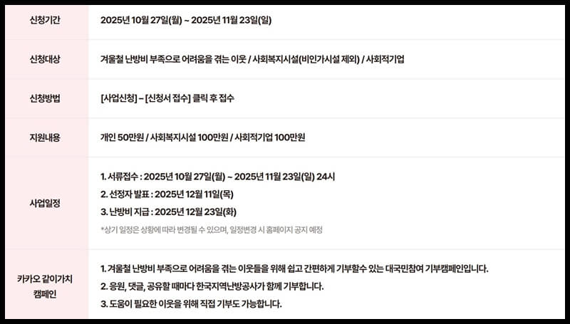 사랑ON난방비 지원 사업 개요