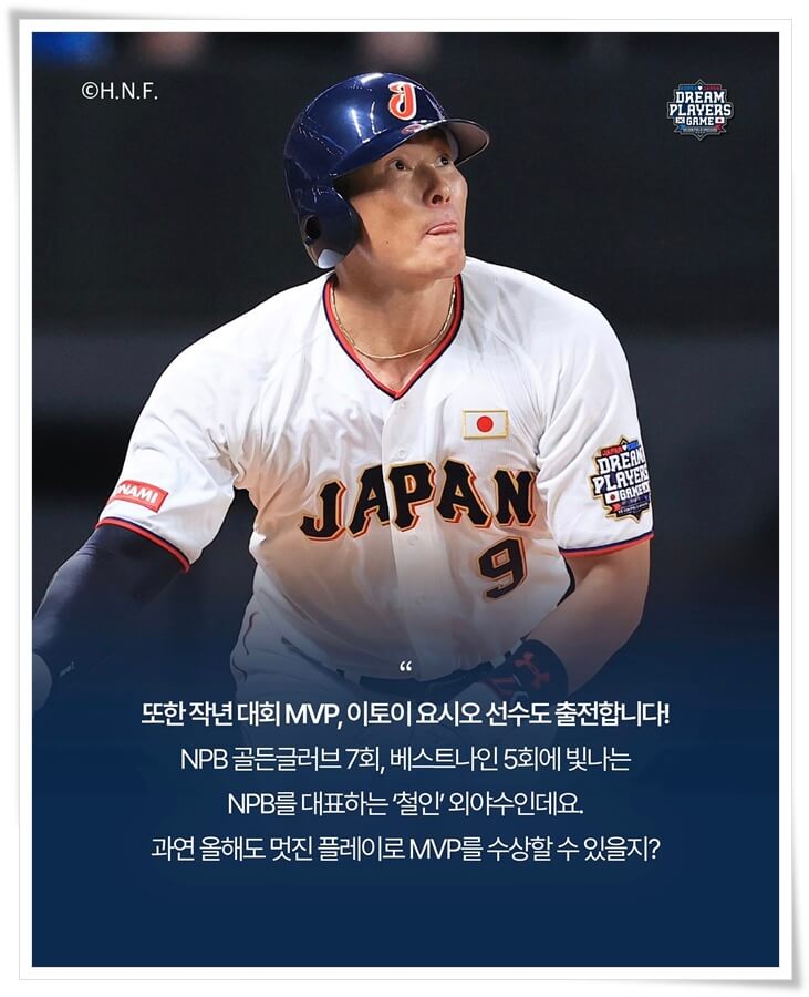 한일드림플레이어즈 선수 명단의 일본 대표팀은 하라 다쓰노리 감독이 지휘하며, 일본 프로야구의 황금기를 대표하는 스타들이 합류합니다. 마스이 히로토시, 미야모토 신야, 오가사와라 미치히로, 후쿠도메 고스케 등 한때 메이저리그 무대에서도 활약했던 선수들이 다시 한번 그라운드에 오릅니다. 일본팀의 강점은 정교한 타격과 안정된 수비. 한국팀의 강력한 장타 라인에 맞서 기술적인 플레이로 승부를 걸 전망입니다. 특히 후쿠도메 고스케와 미야모토 신야의 출전 소식은 일본뿐 아니라 한국 팬들에게도 반가운 뉴스입니다.