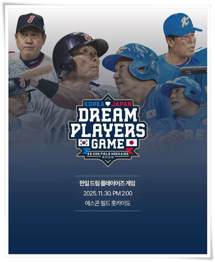 오는 2025년 11월 30일, 한국과 일본의 야구 레전드들이 다시 한자리에 모이는 한일드림플레이어즈 게임이 열립니다. 지난해 첫 대회가 성황리에 마무리된 이후, 팬들의 뜨거운 요청으로 올해 다시 돌아온 한일드림플레이어즈는 단순한 친선경기가 아닌, 양국 프로야구의 역사를 함께하는 상징적인 무대로 자리 잡았습니다. 한국의 전설적인 선수들과 일본의 거물들이 맞붙는 이번 경기는 그 자체로 한 편의 드라마이자, 세대를 초월한 야구의 축제가 될 텐데요~ 지금부터 2025 한일드림플레이어즈 중계 일정 및 선수 명단에 대해 정리해 보도록 하겠습니다.