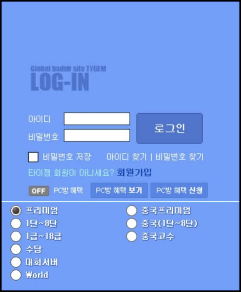 PC에서 타이젬 바둑을 즐기기 위해서는 웹 대국실 혹은 PC 클라이언트 설치형 대국실 중 선택할 수 있습니다.