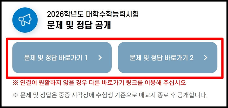 2026학년도 대학수학능력시험이 진행되고 있는 현재, 부모님들과 학원 선생님들은 2026학년도 수능 문제 공개 시간과 수능 정답 발표 시간을 가장 먼저 찾아보곤 하실 겁니다. 수험생들 또한 시험이 끝난 직후에는 수능 정답 발표 시간을 찾아볼 거라 생각이 되는데요~ 온라인에는 수많은 비공식 정답이 많이 떠돌 테지만 정확한 수능 문제 공개 시간과 정답 발표 시간 정리해 드리겠습니다.