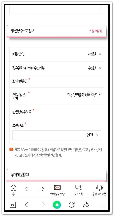 물론 전화로 예약을 할 때도 발송인과 수취인 정보 그리고 물품의 크기 및 무게, 희망 시간 등을 알려줘야 하고, 요금은 상담원의 안내에 따라 카드 또는 현금으로 결제하면 됩니다. (현장 결제도 가능함)