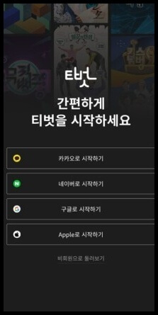 구글 플레이스토어 또는 앱스토어에서 티벗을 검색후 앱을 설치한 뒤 카카오톡, 네이버, 구글, 애플 계정으로 간편하게 로그인하고 이용하면 됩니다.