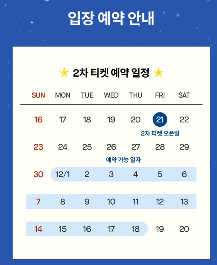 잠실 크리스마스 마켓 예약은 네이버 예약을 통해 진행됩니다. 올해는 총 세 차례에 걸쳐 순차적으로 예약이 오픈되는데, 첫 번째 예약분은 11월 10일에 시작되어 20일부터 30일까지 이용 가능한 티켓이 판매되었습니다. 두 번째 예약은 11월 21일에 열리며, 크리스마스 직전인 12월 1일부터 18일까지의 이용권을 포함합니다. 세 번째 예약은 12월 8일에 시작되며, 연말연시 기간인 12월 19일부터 내년 1월 4일까지 사용할 수 있는 티켓을 예매할 수 있습니다. 잠실 크리스마스 마켓 예약은 경쟁이 매우 치열하기 때문에, 오픈 시간 전에 미리 네이버 계정에 로그인하고 결제 수단을 등록해 두는 것이 좋습니다. 특히 주말과 크리스마스 시즌에는 오픈 직후 몇 분 만에 매진되는 경우가 많아 사전 준비가 필수입니다.