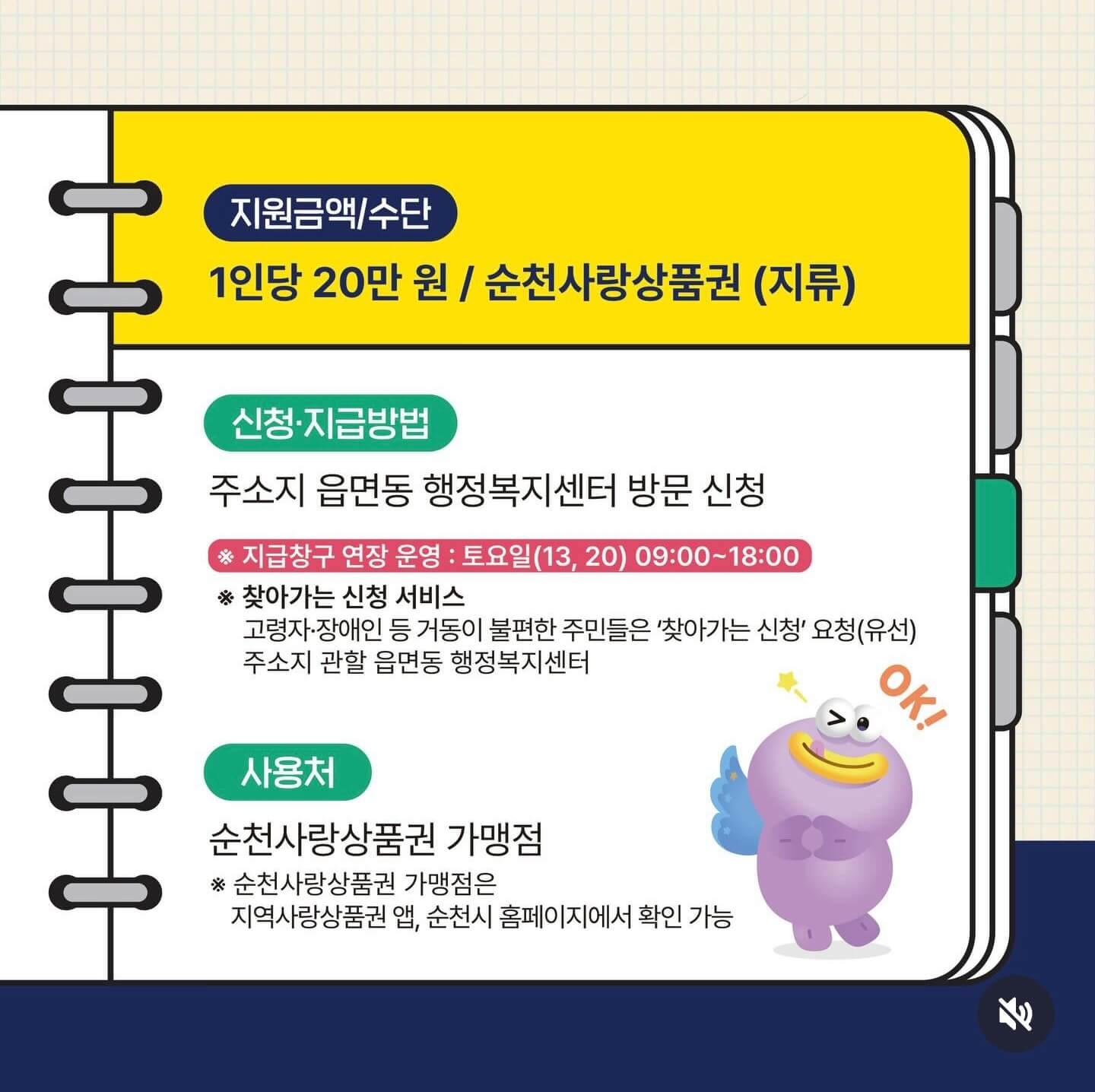 순천사랑상품권으로 지급되는 순천 민생지원금 20만원 신청 기간, 신청 방법, 사용처, 자격 요건을 정리했습니다.