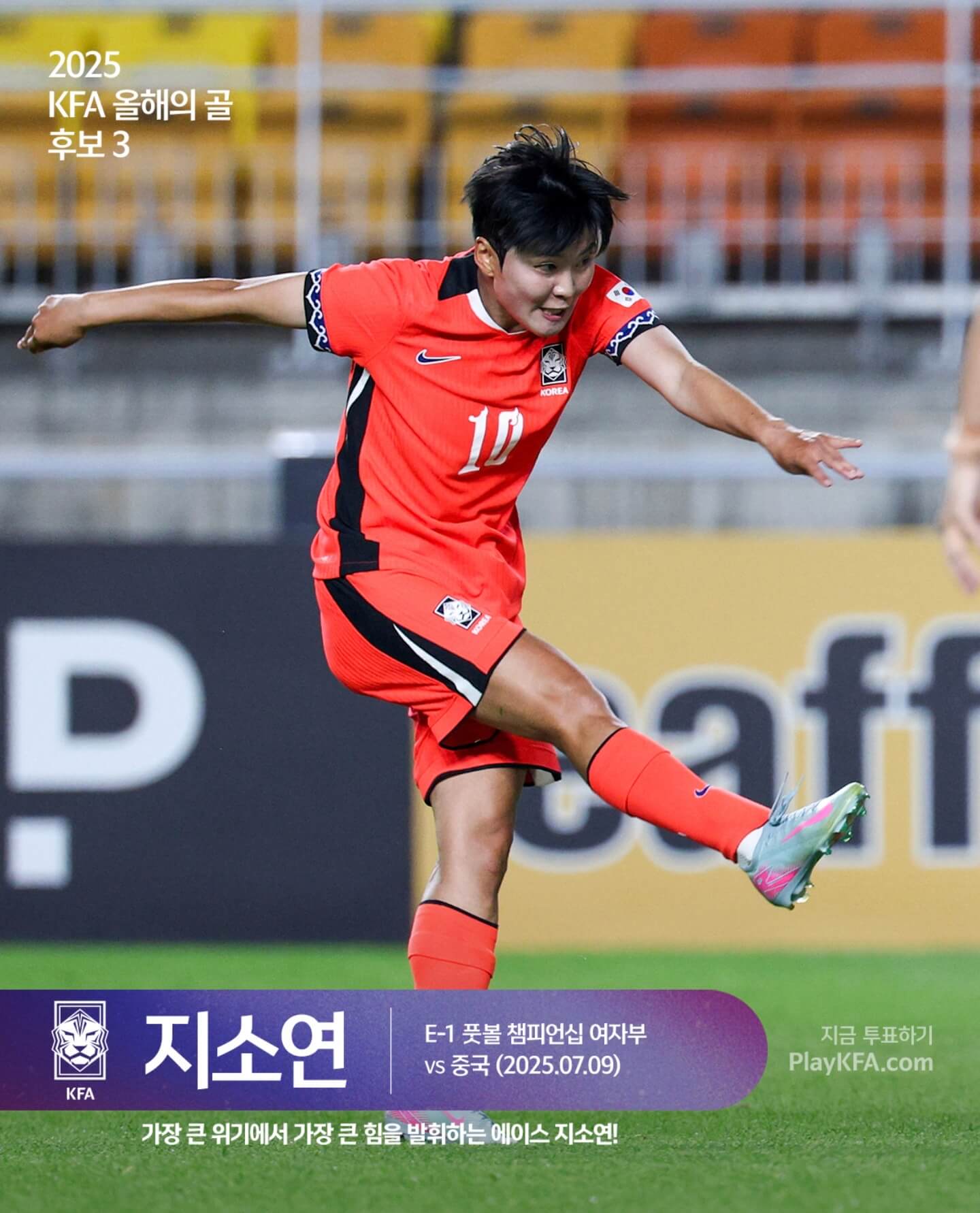 올해 후보에는 남자·여자·유소년 대표팀 경기를 아우르는 아홉 개의 아름다운 골이 올랐습니다. 북중미 월드컵 본선행을 이끈 오현규의 결정적 골, 이강인이 좁은 공간을 비집고 완성한 감각적인 마무리, 지소연이 보여준 노련한 왼발 슈팅처럼 경기마다 상징적 의미가 담긴 장면들이죠.