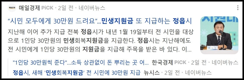 정읍 민생지원금 30만원 지급 및 사용처 조회