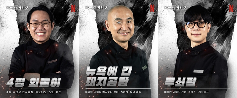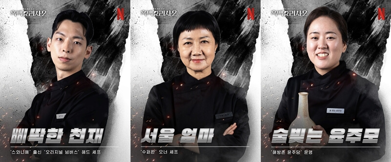백수저에 맞서는 흑수저 셰프들 역시 만만치 않은 실력을 뽐내고 있습니다. 닉네임으로 활동하는 이들은 안녕 봉주르, 천생연분, 무쇠팔, 칼마카세, 4평 외톨이 등 개성 넘치는 이름을 사용하여 시청자들의 호기심을 자극했습니다. 특히 요리 괴물, 바베큐연구소장, 중식 마녀와 같은 실력파들은 초반부터 강력한 존재감을 드러내며 백수저 셰프들과 대등한 승부를 펼쳤습니다. 흑수저 참가자들은 정형화되지 않은 창의적인 조리법과 열정적인 태도로 서바이벌의 긴장감을 더하고 있으며 이들의 실제 정체가 하나둘 밝혀질 때마다 해당 셰프가 운영하는 식당에 대한 검색량이 폭증하는 양상을 보이고 있습니다.