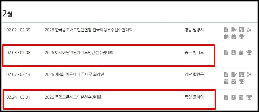 2026년 배드민턴 일정표