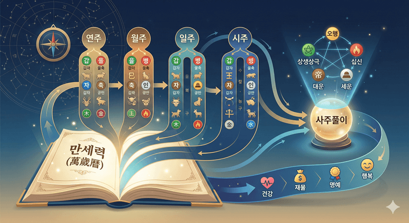 무료 만세력 사이트 추천과 사주팔자 풀이 보는 방법을 완벽 정리했습니다. 포스텔러, 천을귀인 앱부터 년주 월주 일주 시주 해석법까지 확인하세요.