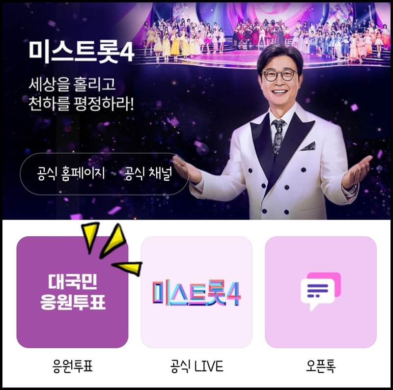 미스트롯4 투표는 별도의 앱을 설치해야 하는 현역가왕3와 달리 공식 홈페이지를 통해서만 진행되니 참고 바랍니다.