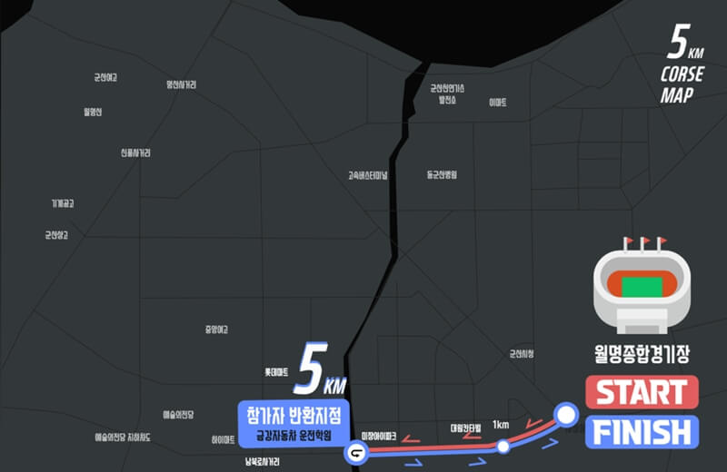 새만금 마라톤 대회 코스는 군산의 현대사와 미래가 공존하는 아름다운 구간들로 설계되었습니다. 월명종합운동장에서 출발하여 사정삼거리와 미장교를 지나는 5km 코스는 초보자도 부담 없이 즐길 수 있으며, 10km 코스는 나운사거리 인근 스타벅스 나운점 앞을 반환점으로 삼습니다.