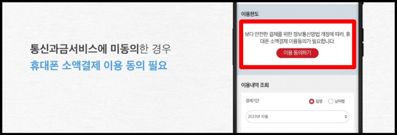 그렇게 소액결제 내역을 조회하고 kt 소액결제 한도 조정을 하기 위해서는 이용동의가 필요하니 이용동의하기 절차를 먼저 진행합니다.
