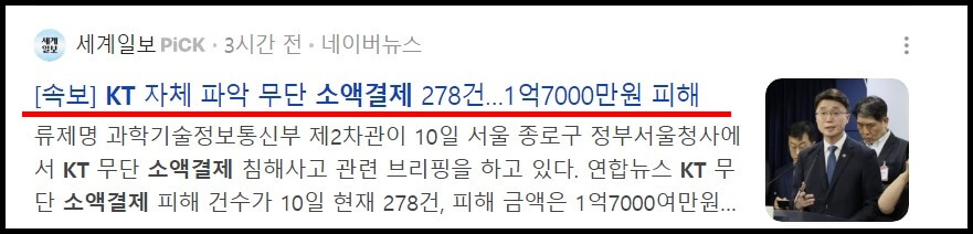 최근 kt 가입자들을 대상으로 한 소액결제 해킹 피해 사건이 발생하여 피해액이 무려 1억 7,000만 원에 달 한다고 하여 전국적으로 큰 충격을 주고 있습니다. 주로 새벽 시간대에 이용자도 모르게 모바일 상품권 구매 등이 이뤄지는 무단 소액결제 피해가 계속해서 늘어나고 있는 상황인데요~