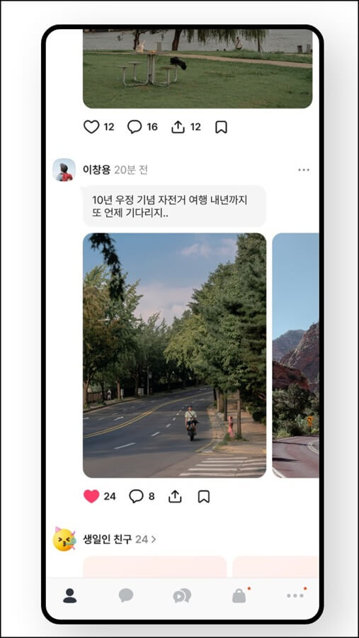 이번에 카카오톡이 업데이트 되면서 개편된 부분을 사려보니 친구탭이 SNS 스타일 피드로 개편되어 친구들의 프로필 변경 내역이나 게시물이 인스타처럼 스크롤로 보이게 변경되었습니다. 그리고 프로필 변경 시 기본 공개 범위가 "친구에게만"으로 설정되고, 나만 보기, 친구 숨김 기능 등 프라이버시 설정이 한층 강화되었으며 오픈채팅 탭이 '지금 탭'으로 전환되어 실시간 콘텐츠와 커뮤니티 형식이 강조되었습니다.