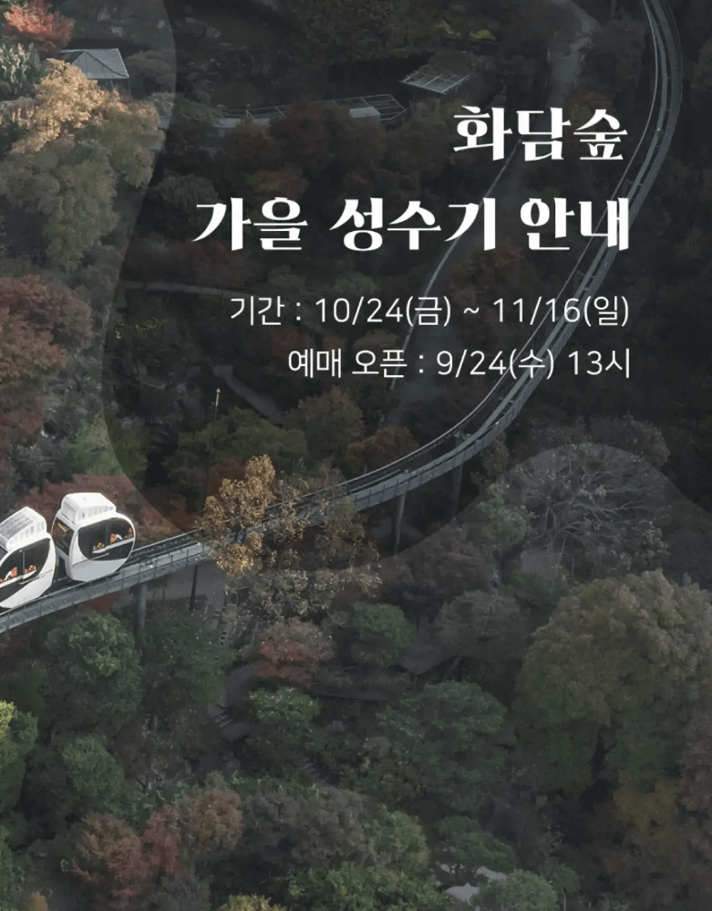 2025년 가을 단풍 시즌 화담숲 예약은 9월 24일 오후 1시 오픈! 10월 24일 ~ 11월 16일 성수기 완벽 예약법과 모노레일, 오픈시간까지 한번에 해결하세요.