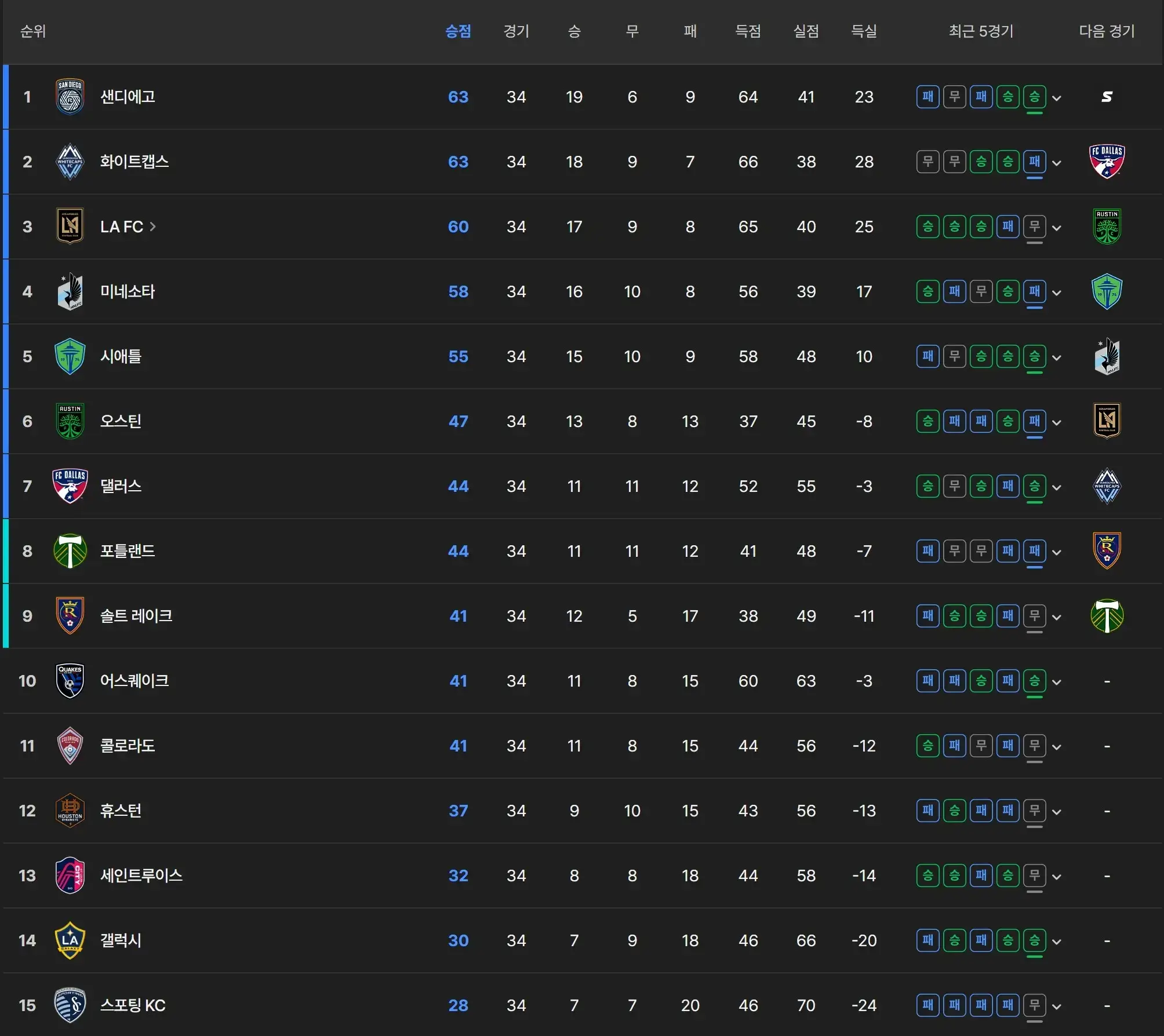 - 4위 미네소타 유나이티드 vs 5위 시애틀 사운더스